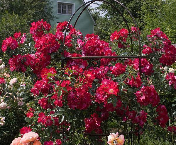 Саженцы розы «Дортмунд» (Dortmund) относятся к устойчивым перед морозами, вредителями и болезнями плетистым сортам. Высаживают их на солнечные участки. Почва для саженцев розы «Дортмунд» подходит с любым составом. Время посадки – май ил иоктябрь. Крупномеры розы «Дортмунд» в высоту достигают от 200 до 250 см. Ширина кустика – от 150 до 200 см. Цветочки в диаметре до 11 см, имеют махровую структуру и окрашены вишневый оттенок. Собираются они в легкие соцветия. Аромат тонкий, не навязчивый. Используют этот сорт для создания высоких цветников, рабаток и вертикального озеленения участка.