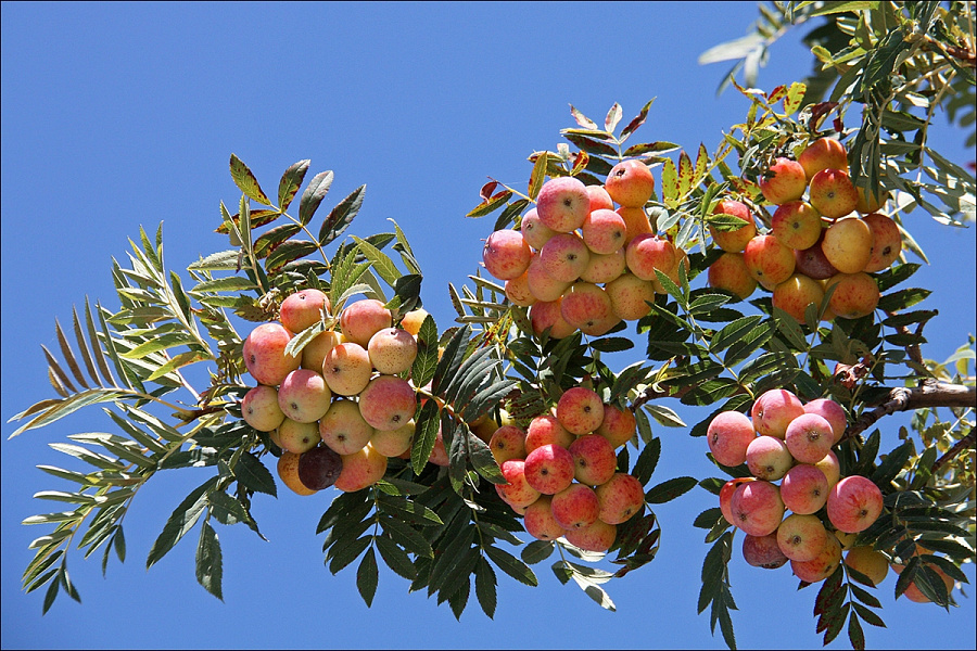 Рябину лучше высаживать на границе участка, ведь она достаточно высокая. Цветы у этого вида поваляется позже, чем у других сортов. Ягоды довольно крупные – сантиметр в диаметре. Их особенно ценят в кулинарии. Оранжевая мякоть кисловатая со сладким шлейфом. Красные ягоды служат не только как вкусный урожай, но и хорошо украшают сад.