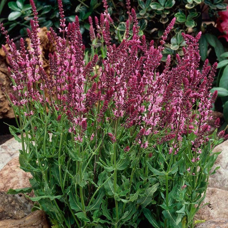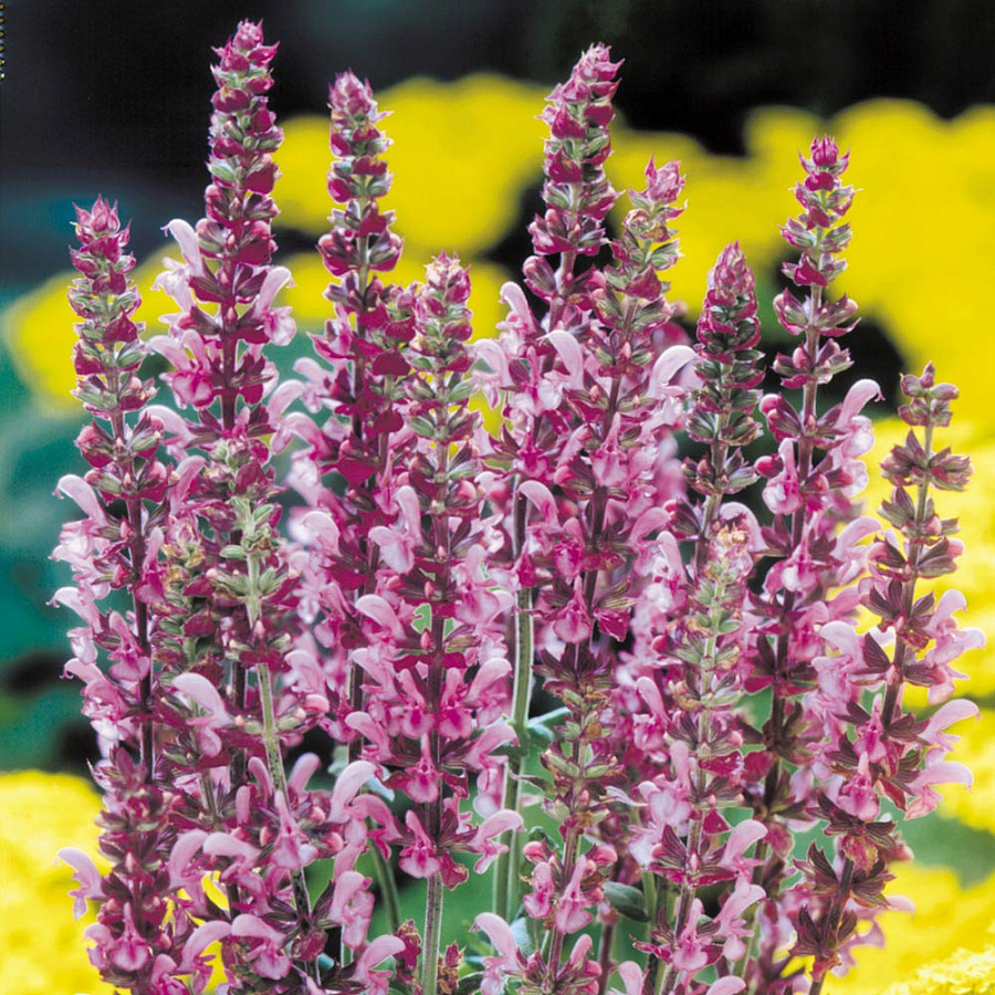 Рассада шалфея дубравного Роуз Квин (Rose Queen) прекрасно играет роль фона для любых сортов роз благодаря мелким розово-сиреневым сидячим цветам, собранным во внушительные свечи колосовидных соцветий длиной 30-40 см. Рост самого растения достигает 60 см. Прямые ветвящиеся стебли и крупные слегка опушенные листья дают рассаде прелестный сизый оттенок до и после цветения.