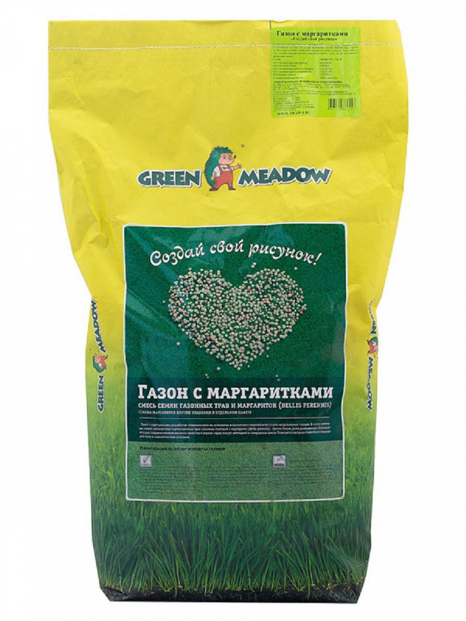 Семена газона "Цветы и цветущие газоны: Создай свой рисунок" подбирались специалистами на основании многолетнего европейского опыта возделывания газонов. Такой травяной покров отличается неприхотливостью к плодородию почв и климатическим условиям. Но главной особенностью смеси является то, что в ней помимо злаковых культур присутствуют маргаритки. Все семена газона "Цветы и цветущие газоны: Создай свой рисунок" можно просто перемешать и посеять. А можно посеву придать особую форму в виде фигуры, имени или силуэта.
