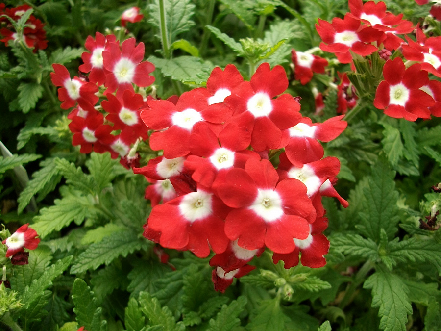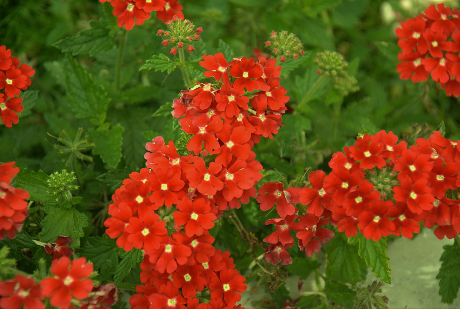 Это растение цветет в мае, июне и июле, радуя глаз красивыми красными цветками. Вербена гибридная красная предпочитает солнечные места и дренированные богатые почвы. Для ухода за ней необходимо регулярное поливание и опрыскивание, особенно в жаркие летние дни. Растение нуждается в удобрениях для активного роста и цветения.