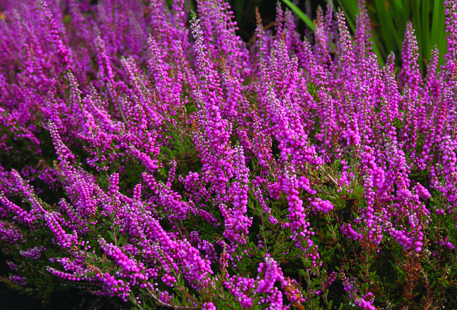 Саженцы вереска обыкновенного Яна (Jana) добавят цветнику яркости в осенний период. С сентября по октябрь многочисленные, направленные вверх, побеги покрыты крупными махровыми цветочками насыщенного малиново-розового оттенка. Цветущий вереск распространяет характерный терпкий медовый аромат. Вне цветения многолетник не теряет привлекательности за счет густой мелкой светло-зеленой листвы, которая не покидает побегов с приходом холодов.