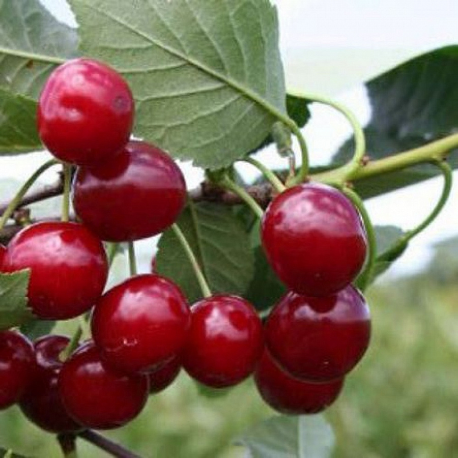 Саженцы Вишни обыкновенной Ивановна (Дюк) (Prunus cerasus) ― черешнево-вишневые гибриды, вырастающие в сильные деревья с мощной кроной. Сорт ценится за крупный (до 7 г) размер ягод темно-красного цвета с нежной мякотью и узнаваемым кисло-сладким вкусом.