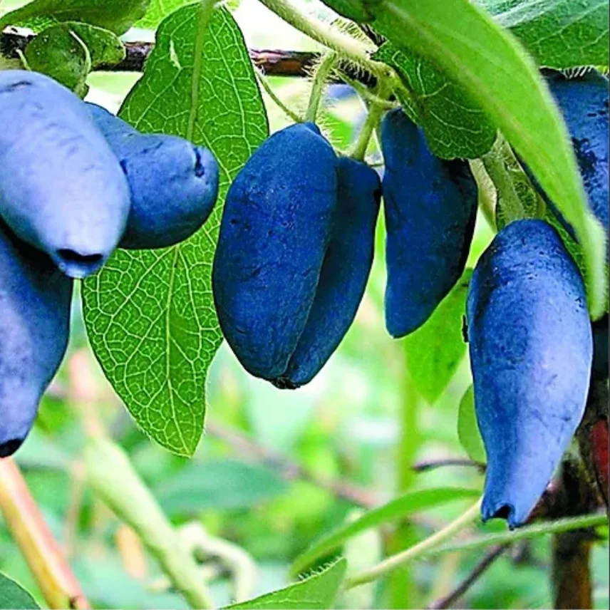 Саженцы жимолости съедобной Хоней Би (Honey Bee) или «Медовой Пчелки» формируют урожай очень сладких, по-настоящему «медовых» ягод уже в конце июня. Плоды синие, массой 2 грамма, способны оставаться на ветках до полного высыхания (заизюмливаются), позволяя не спешить с уборкой, а растягивать удовольствие, лакомясь урожаем с куста. С взрослого растения можно собрать более 4 килограммов ягод.