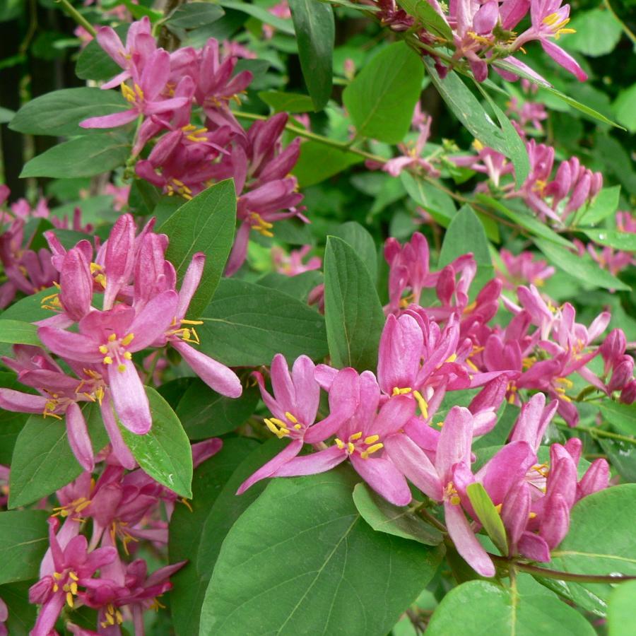 Саженцы жимолости татарской Розеа (Rosea) идеально подходят для создания живой изгороди и высадки в городских условиях (растение легко переносит загазованный воздух). Мощный куст с шаровидной кроной достигает высоты 3,5 метра и 2 метра в поперечнике. Листва густая, заостренная, ярко-зеленого оттенка. Цветет в мае на протяжении месяца ярко-розовыми мелкими цветочками - колокольчиками, собранными в пучковые соцветия. Цветущая жимолость издает прекрасный аромат, привлекающий в сад насекомых.